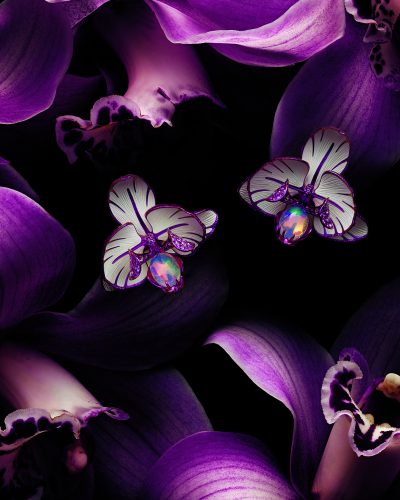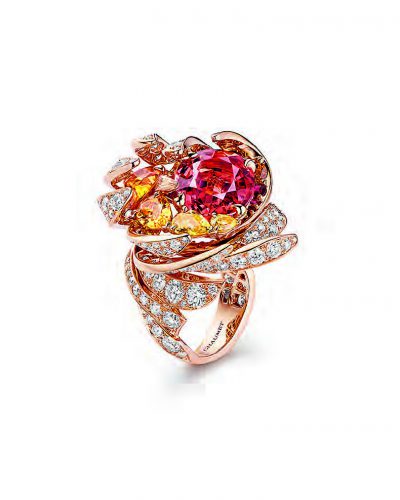 poetic moods are interpreted with luminous hues reflecting the movements of the stellar fire ball while Les Caprices du Ciel, the third act, paints romantic, stormy weather, with golden clouds and topaz wind creating a harmonious dialogue. The final act, Les Habitants du Ciel, is a celestial bestiary where dancing birds fly graciously away to welcoming lands. In each series, rings, earrings, brooches, necklaces, bracelets and majestic tiaras enliven the pictorial composition, adding gravitas to the House’s monumental collection. A dazzling invitation to keep your head in the clouds and reach for the stars.