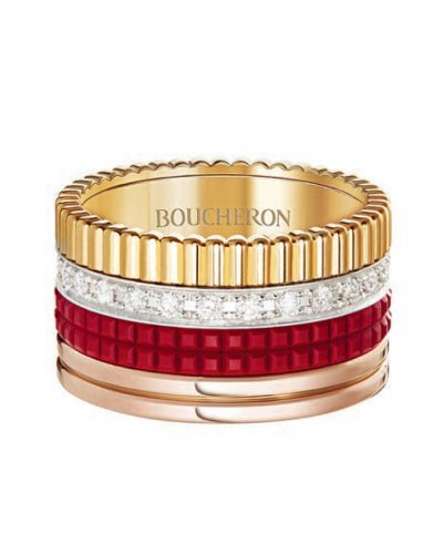 For most, the number four symbolizes stability, security, and luck. French jeweler Boucheron found yet another way to celebrate the number. Launched in 2004, the Quatre collection is now the heartbeat of the Parisian Maison. Comprising four bands, each can be worn individually or stacked, bonding together to make an elegant collage, an entrancing assemblage of exquisite jewels that in some instances scream red. Unisex, the Quatre Red edition, highlights the architectural codes of the brand, allying the Grosgrain line of Diamonds, Double Godron and Clou de Paris designs with a new openwork version for the latter. Graphic, the ring plays with contrasts, light, and brings the red hue to new heights, revealing its owner’s personality. Customizable to our every mood, the Quatre has no rules, so add the bright red jewel tone of the rubies, and you’re set.