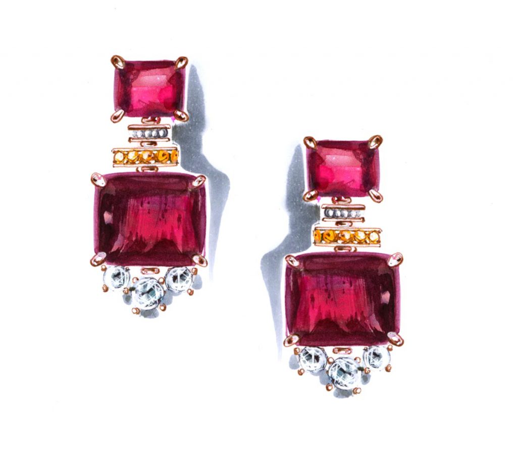 A: All shades of reds – spinel, rubellites – go very well with other colored stones.