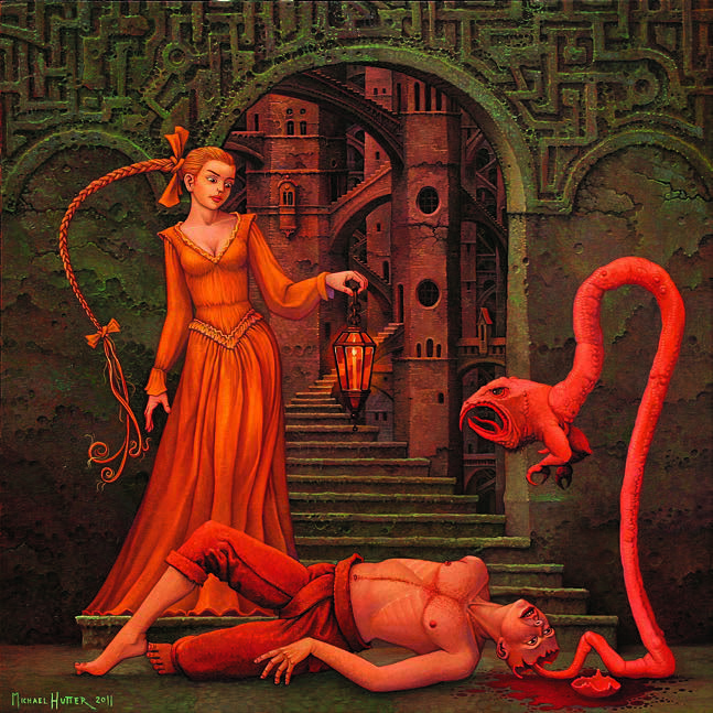A: Complementary color contrasts are very important for my compositions. I need the green to support the impact of the red, and vice versa. But, of course, polarities also have a deeper meaning in my work. Beauty and terror, desire and fear, the sacred and the filthy, lust and nightmares, love and death... it’s these opposites that haunt me and fertilize my fantasy.