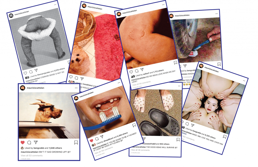 One day, one post. Maurizio’s Instagram (@mauriziocattelan) is a blink-and-you’ve missed it curated exhibition. Uploading one post a day before removing and starting again, we’ve screengrabbed some of our favorite posts in the last month. If you’re not following him, you really should.